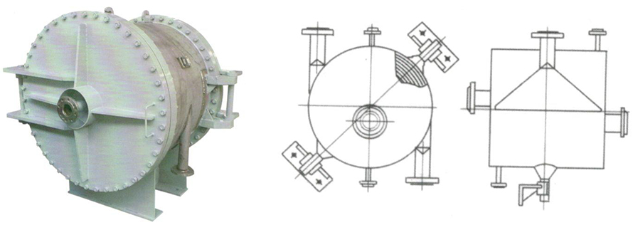 2、在殼體上的接管采用切向結(jié)構(gòu),局部阻力小,由于螺旋通道的曲率是均勻的,液體在設(shè)備內(nèi)流動(dòng)沒(méi)有大的轉(zhuǎn)向,總的阻力小,因而可提高設(shè)計(jì)流速使之具備較高的傳熱能力。