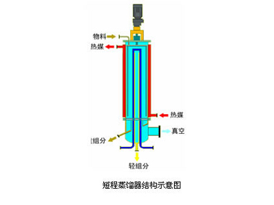 一、物料在加熱面上形成液膜的距離到達內(nèi)置冷凝器并冷凝下來,通過蒸發(fā)器底部的出料口排出,重組份進入短程蒸餾器的殘渣收集槽并從側(cè)面的出口排出。