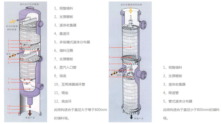 規(guī)整填料塔的分離性能取決于內(nèi)件,即填料、分布器、收集器等。同時(shí)也取決于許多參數(shù),如氣體負(fù)荷、液體負(fù)荷、物料性質(zhì)、操作壓力、填料濕潤性能和液體分布不均勻等等。至今不能由填料的幾何形狀來準(zhǔn)確計(jì)算塔的分離性能,需要通過填料塔的理論和不同條件下通過試驗(yàn)塔來測定準(zhǔn)確數(shù)據(jù)。用戶可根據(jù)資料以近似程度確定塔的尺寸和需要的填料高度。如果需要經(jīng)濟(jì)、合理的結(jié)構(gòu)形式,我廠愿與用戶密切合作。